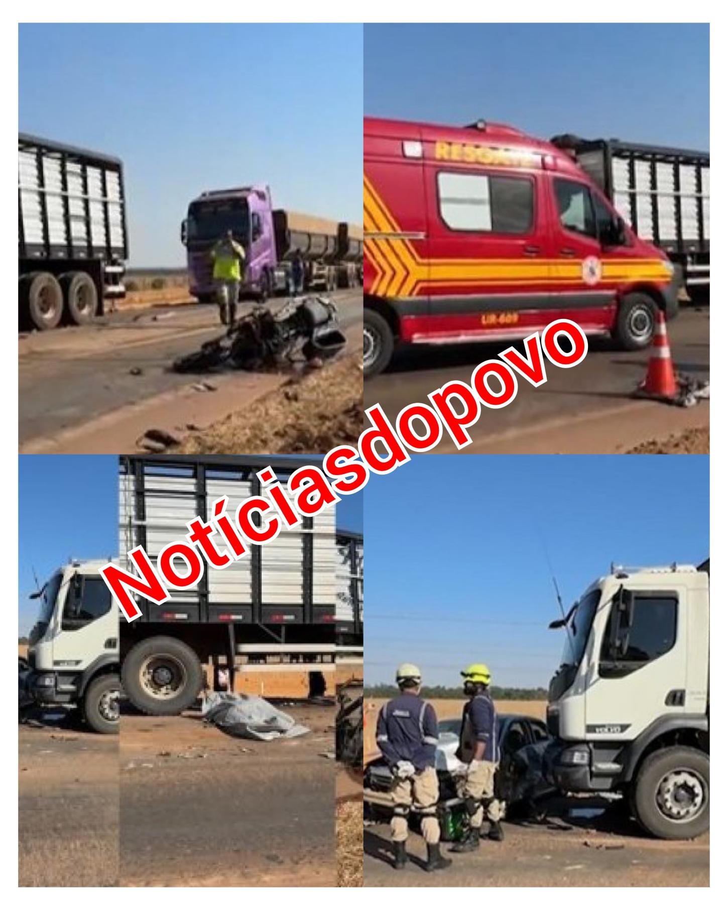 Batida entre 2 motos, carreta e carro mata duas pessoas