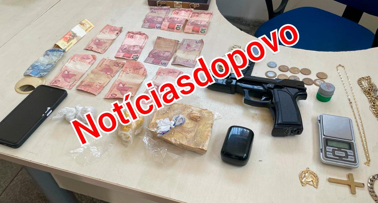 Em busca minuciosa no interior do imóvel, foram localizados diversos materiais ilícitos, entre eles: Uma sacola plástica contendo aproximadamente 10,8 gramas de substância entorpecente (possivelmente crack), uma balança digital, uma pistola tipo simulacro, cerca de 400 gramas de pasta base de cocaína além de diversos objetos de procedência duvidosa.