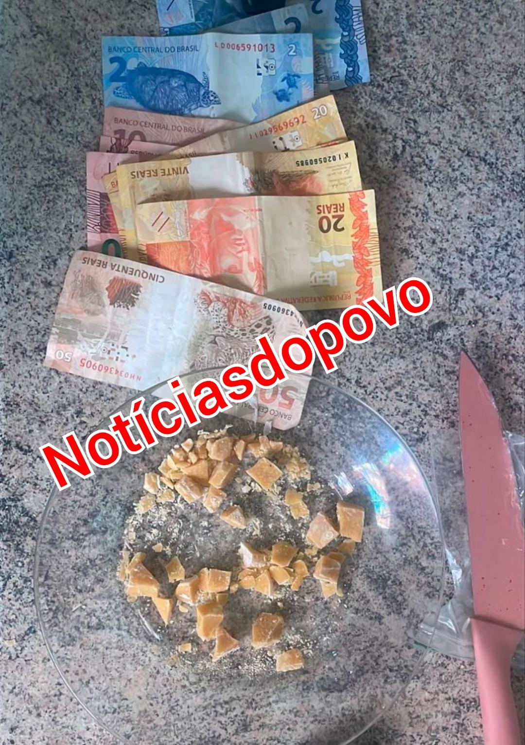 Durante a busca no interior do imóvel, foram localizadas 20 pedras de substância entorpecente, possivelmente pasta base de cocaína, pesando aproximadamente 38 gramas, já fracionadas para a venda, além de uma balança de precisão, dinheiro, duas munições calibre .380 e diversos produtos de procedência duvidosa.